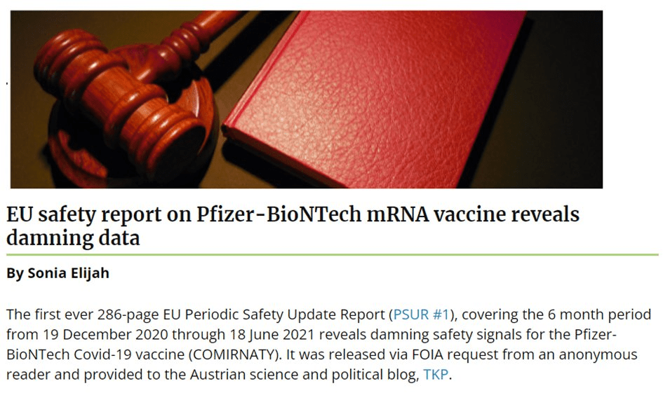 Ainsi, lorsque Tina Peers est passée sur le plateau de GBNews le 24 février, elle aurait déjà dû avoir connaissance des modifications de l’article, et ce, encore plus le 26 février lorsqu’elle a publié ses sources. Or on constate qu’elle n’a pas réellement lu ce rapport. En effet, ce rapport intitulé Periodic safety update report #1 (PSUR) est un rapport de Pfizer destiné aux autorités européennes concernant le suivi du vaccin COMINARTY sur la période post autorisation allant du 19 décembre 2020 au 18 juin 2021.