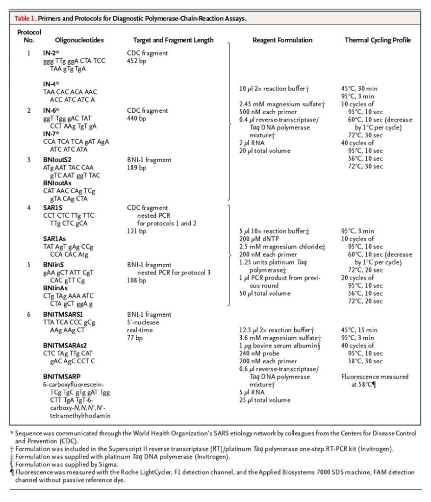 Les amorces « BNIoutS » et « BNIoutAS » sont utilisées pour le fragment « BNI 1 ». Or ces dénominations se retrouvent en mai 2003, dans un article publié dans le NEJM qui identifie la totalité du génome du SARS-CoV, pour désigner deux oligonucléides.