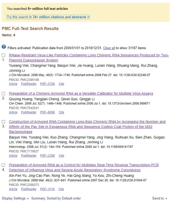 Une recherche par filtre sur NCBI (https://ncbi.nlm.nih.gov/pmc) nous permet de trouver 4 occurrences du terme « SARS-CoV2 » avant 2019.