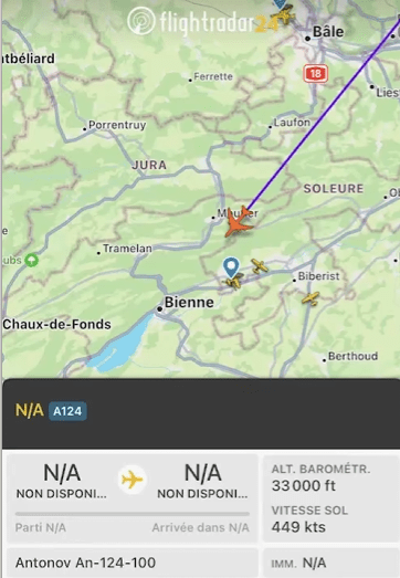 La troisième image est, elle, une capture d’écran du site FlightRadar24 dont on reconnaît le design.