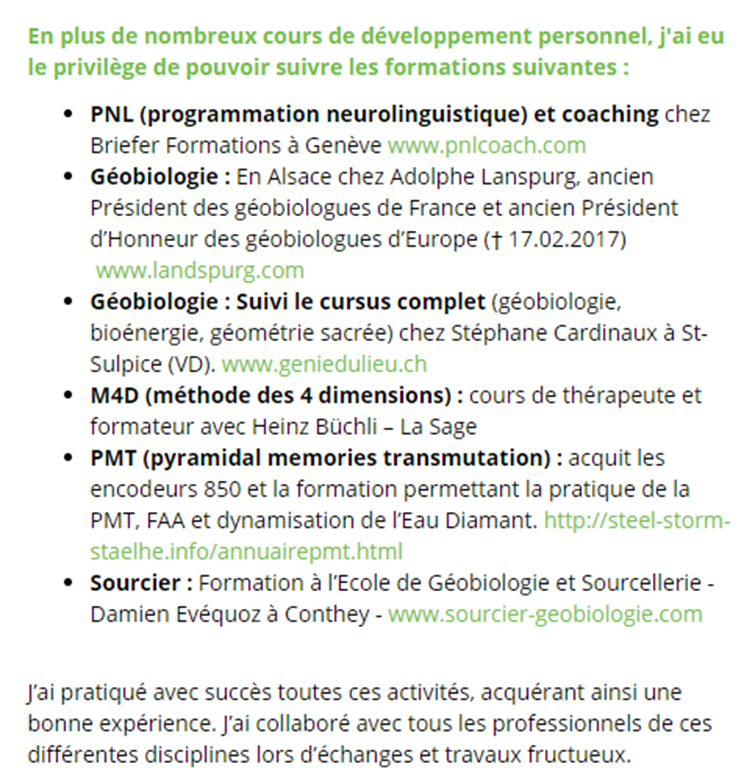En somme, rien de neuf sous le soleil. Le film joue plus sur la « crédibilité » des témoignages que sur le fond du propos. Crédibilité pourtant rapidement écornée puisque le film s’ouvre, dès la vingtième seconde, avec l’intervention d’un certain Frédéric Boichat. Ce curieux personnage est présenté comme un « géobiologue », une pseudoscience basée sur « la croyance ésotérique des relations de l’environnement, des constructions et du mode de vie avec le vivant et notamment des ondes liées aux champs magnétiques et électriques, courants d’eau souterrains, réseaux dit « géobiologiques », failles géologiques, etc » [à ne pas confondre avec la géobiologie, branche de la paléontologie – NDLR]. Son blog s’affiche en grand : « Tout est énergie et information. C’est la base de toute vie« . Quelle expertise au sujet de l’aéronautique ou de la physique atmosphérique ? Aucune. Ancien « cadre administratif dans le domaine social« , il s’est ensuite reconverti dans la géobiologie en suivant des formations auprès d’autres géobiologues et de « nombreux cours de développement personnel« , précise-t-il sur sa page de présentation.