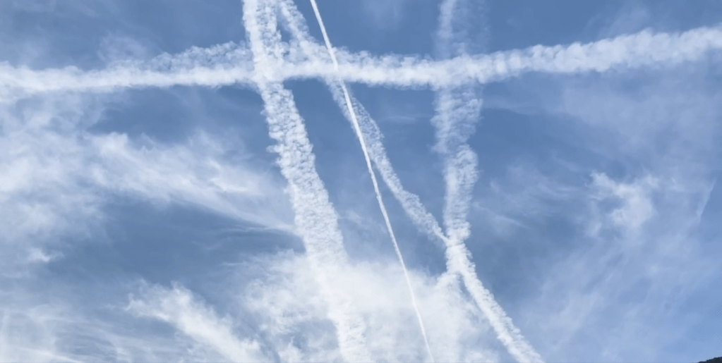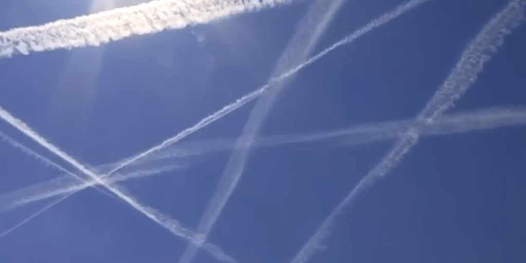 En dehors de ces deux témoignages, le reportage tente de s’appuyer sur des éléments présentés comme factuels. À commencer par des images filmées d’un ciel bleu zébré de traînées de condensations persistantes.